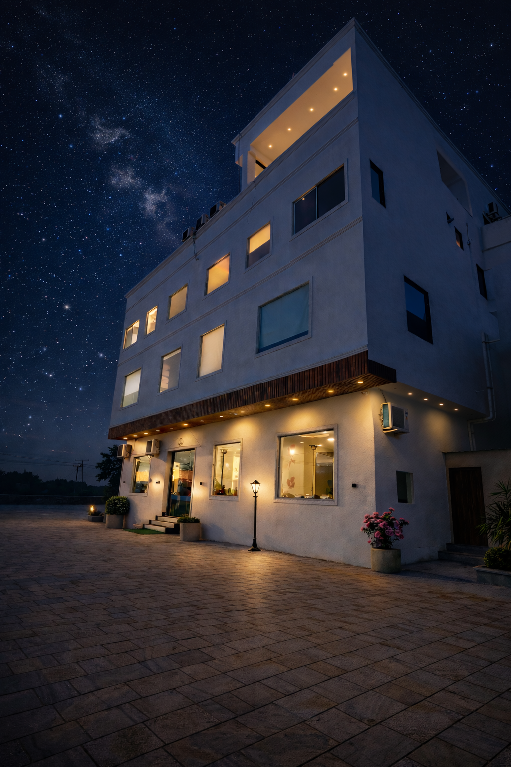 We offer a complete hospitality experience including luxury rooms & cottages, AC restaurant, banquet hall, marriage garden, rooftop/machan, swimming pool, pool café, and gym making us ideal for stays, weddings, and corporate events.